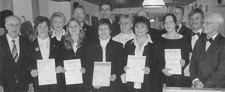 Johannes Wolff zeichnete elf langjährige Chor-mitglieder mit gelben Pfarreiurkunden aus, die