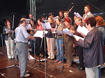 Partnerstadttreffens im August 2005 sang Music&More für die englischen Gäste in der